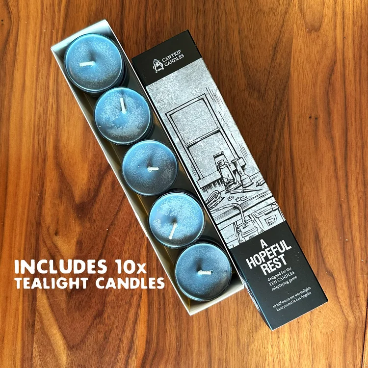 Um conjunto de dez velas com aromas diferentes para a sua mesa de RPG, incluindo The Glowing City, que simula arumas de cidades medievais. The Cryptid Cabin que traz cheiros de mata e cabines no meio de florestas. The Last Lighthouse traz cheiros de mar e pedra molhada, visando simular o cheiro de farois perto da maré. E até mesmo A Hopeful Rest, que apenas traz a vela, sem cheiros especificos.