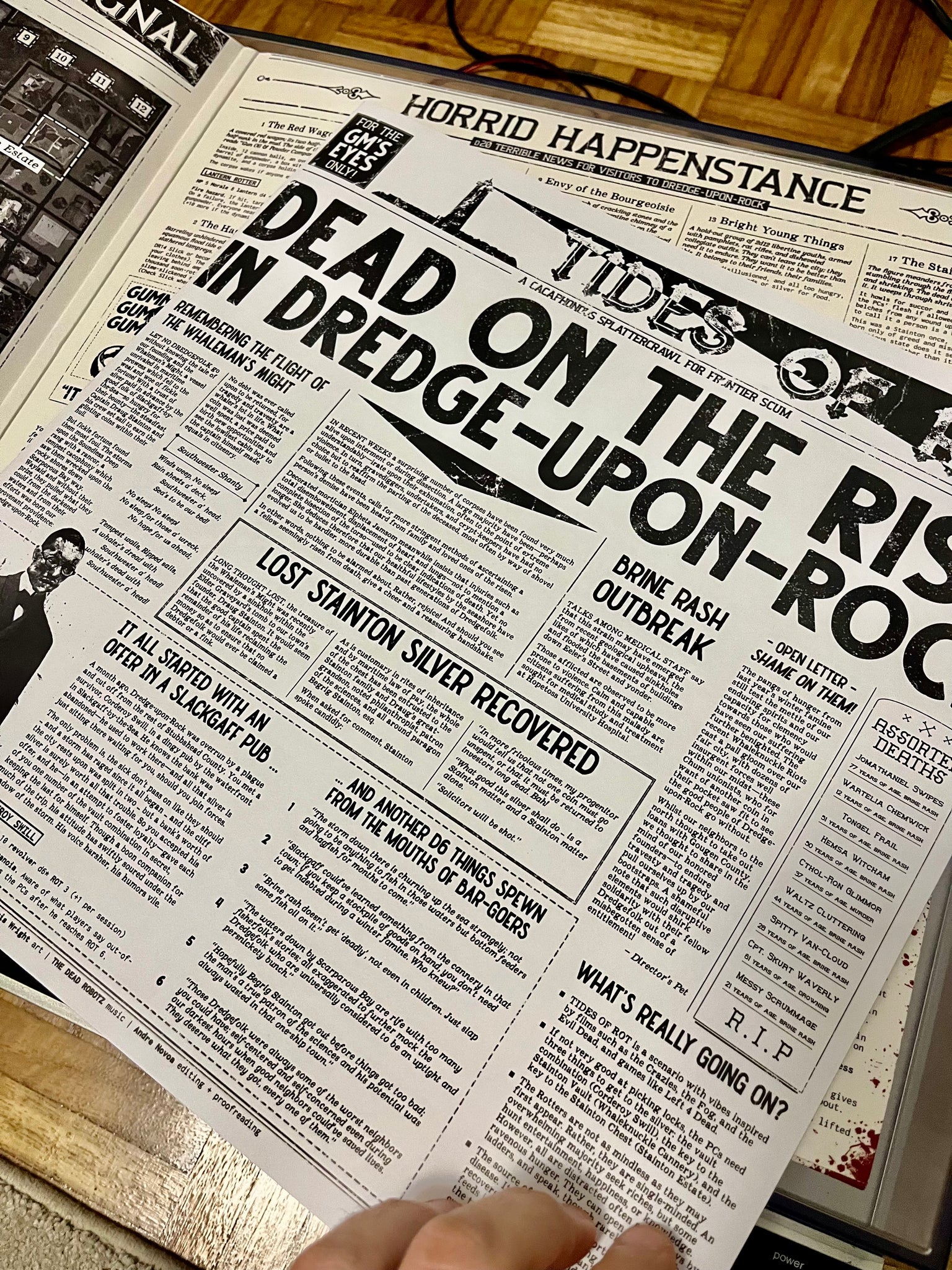 Last Train to Bremen é um jogo de se contar histórias de músicos amaldiçoados e péssimas decisões. Perfeito para one shots, ele usa regras enxutas baseado no Liar’s Dice e outros jogos de dados para entregar uma história de segredos, tensão, traições e apunhaladas pelas costas.